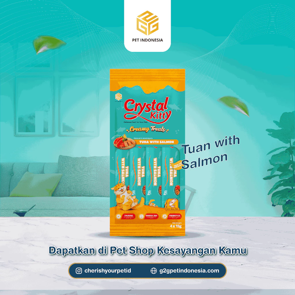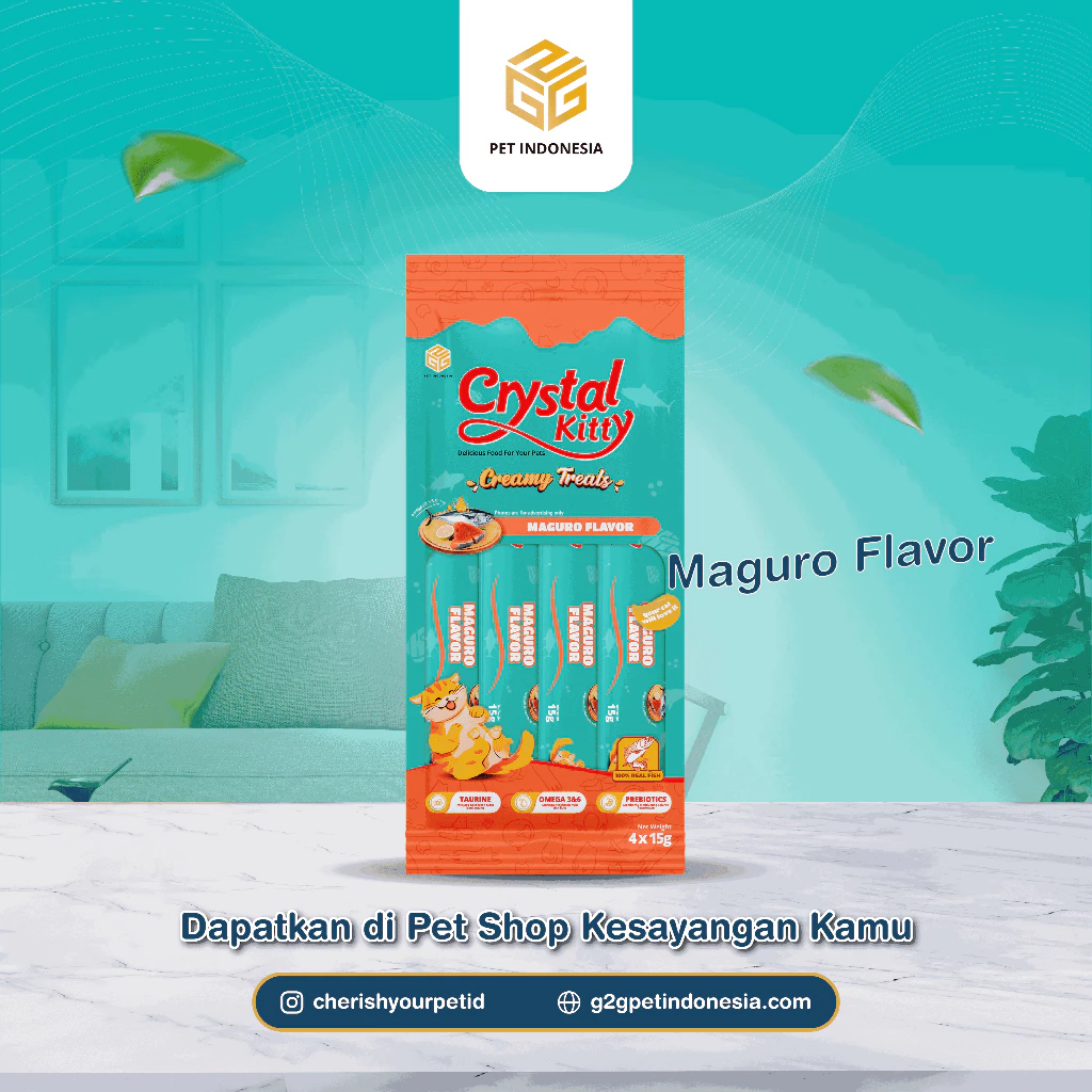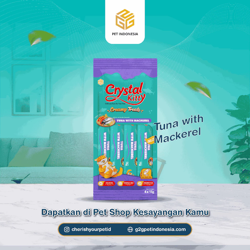 Catatan: Crystal Kitty Creamy Treats hanya boleh diberikan sebagai camilan. Untuk memenuhi kebutuhan nutrisi kucing sehari-hari, tetap berikan makanan utamanya.