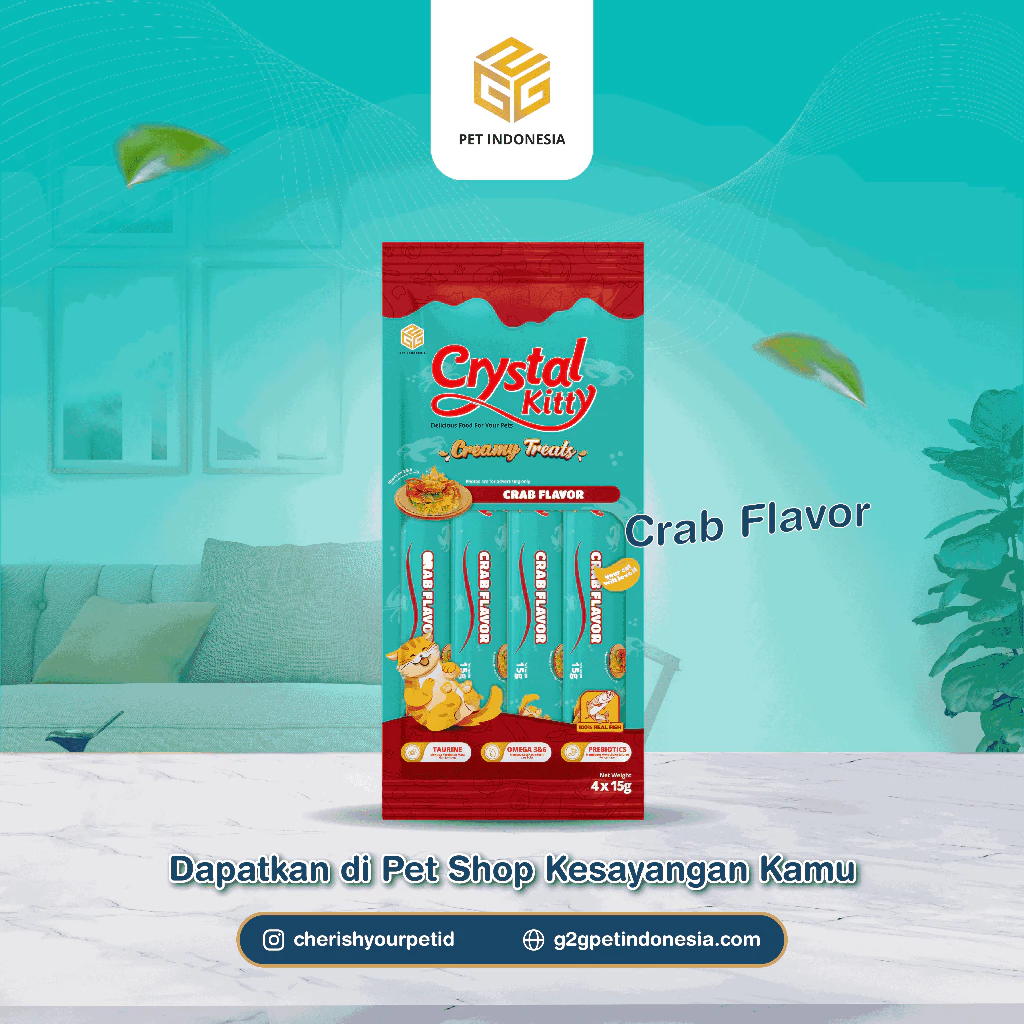 Crystal Kitty Creamy Treats tersedia dalam berbagai varian rasa dengan manfaat khusus pada setiap variannya.