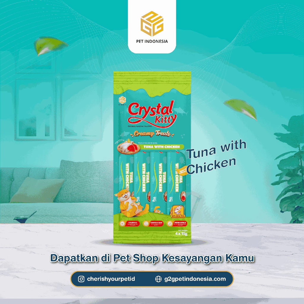 Crystal Kitty Creamy Treats adalah camilan dalam bentuk krim untuk kucing. Terbuat dari bahan berkualitas tinggi, Creamy Treats tidak hanya lezat, tapi juga bermanfaat untuk kesehatan kucing. Crystal Kitty Creamy Treats dapat digunakan saat bermain atau melatih kucing, atau sebagai topping pada makanan kering untuk meningkatkan selera makan.