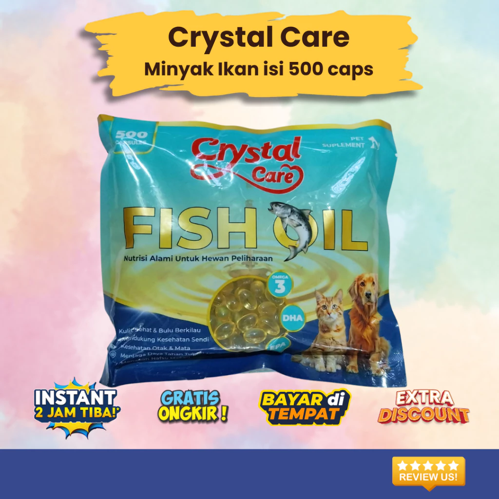 Fish Oil Crystal Care Meberikan Omega-3 Esensial untuk mendukung kesehatan hewan peliharaan anda. membantu menjaga kulit sehat, bulu berkilau sendi yang kuat, menjaga kesehatan mata & otak, daya tahan tubuh dan menambah nafsu makan