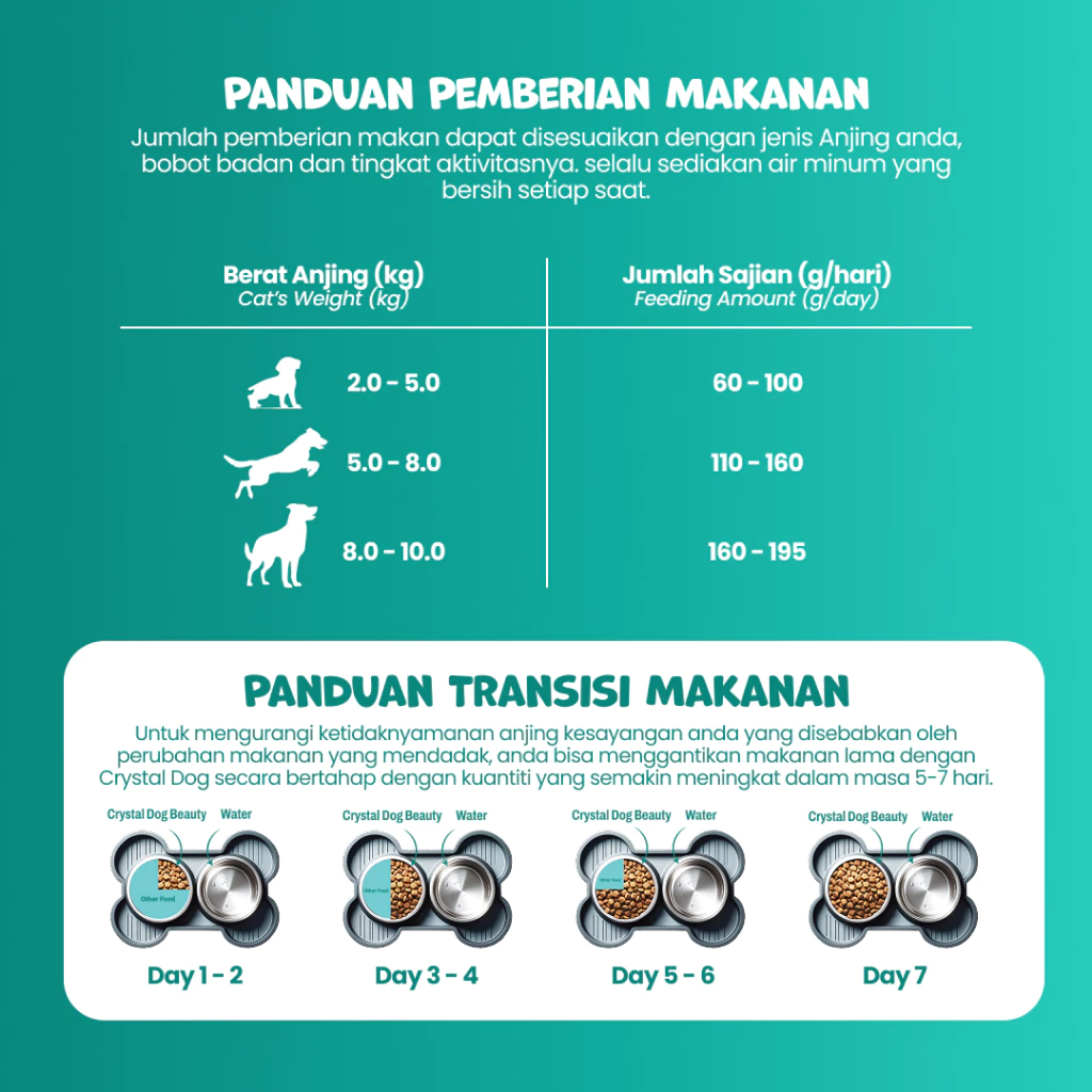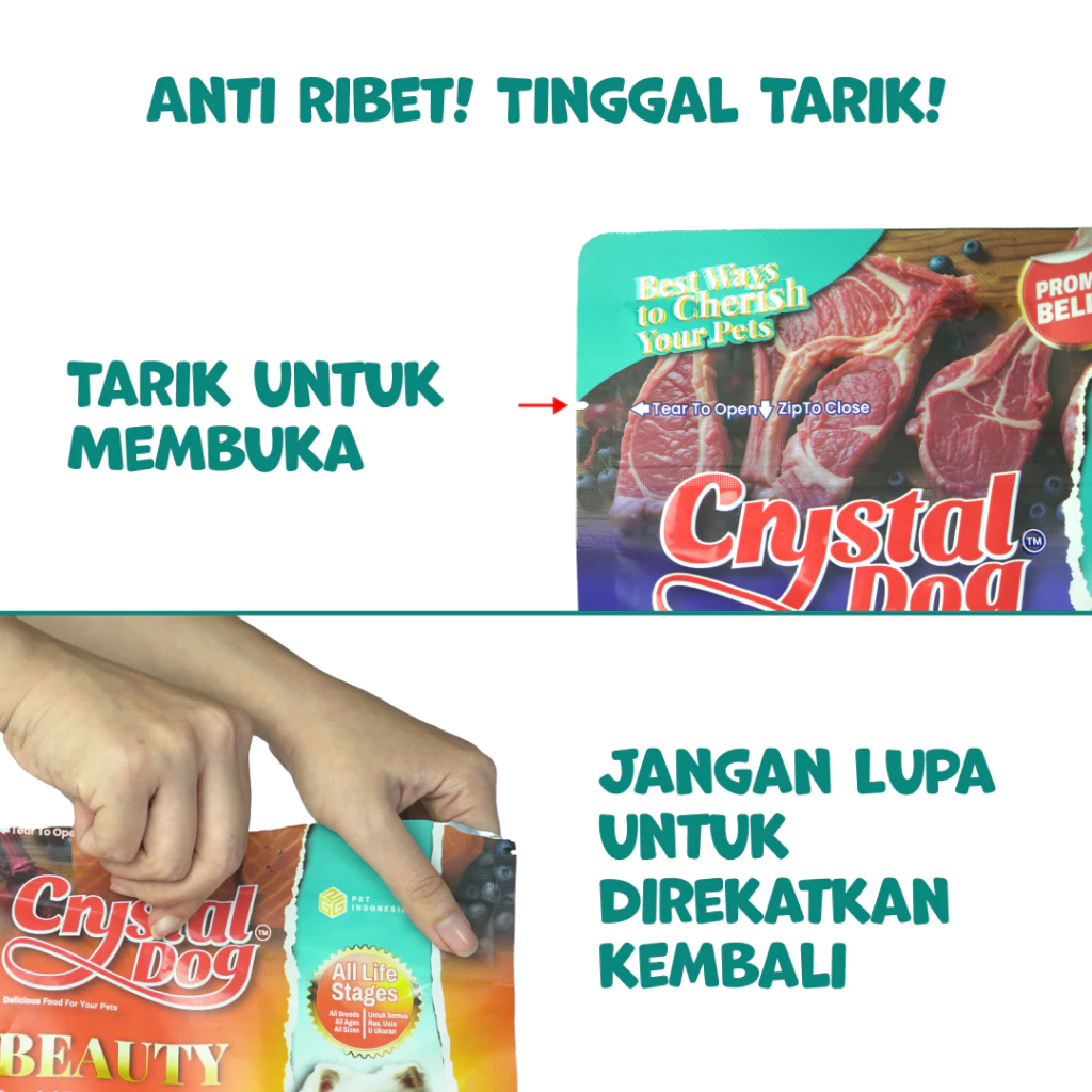 Crystal Dog Beauty Lamb Vegetable adalah pilihan makanan kering untuk anjing dengan protein domba yang lembut dan mudah dicerna. Diperkaya omega-3 & omega-6 untuk menjaga kulit tetap sehat, mengurangi iritasi, serta membuat bulu lebih tebal, halus, dan berkilau dalam 30 hari.